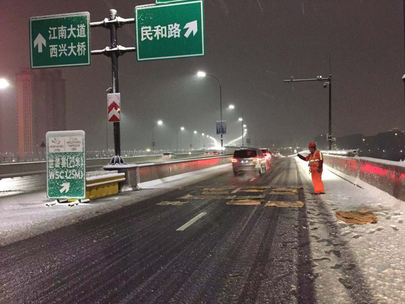 據(jù)統(tǒng)計,此次抗雪防凍工作共準備搶險車輛90余輛,投入人力750余人,使用鹽袋340余包,草包4900只,融雪劑21噸,鐵鍬、掃把340余把。