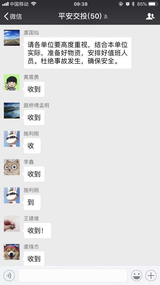所屬各單位通過“平安交投”微信號時時匯報安全生產(chǎn)情況