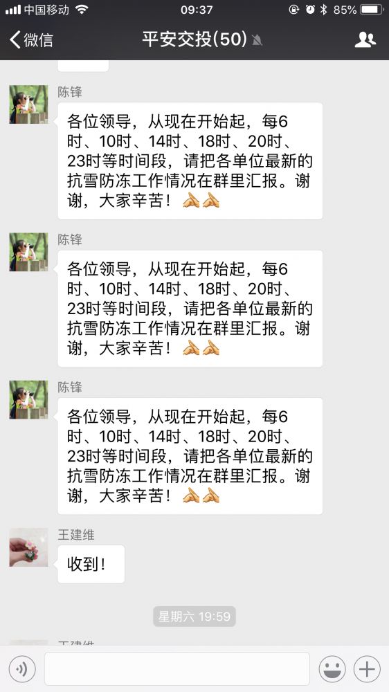 除通過紙質(zhì)、電話方式布置工作外,集團領導通過“平安交投”微信號及時傳達上級要求,布置具體工作