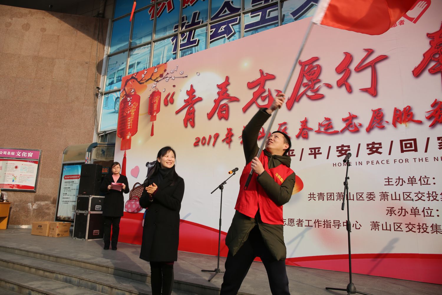 為弘揚“奉獻、友愛、互助、進步”的志愿精神,助力春運工作平安、有序開展,進一步發揮青年志愿者在春運工作中的重要作用,1月21日上午,團區委、區交通運輸局團工委、區交投集團團委聯合在蕭山汽車站舉行“青春志愿行·奉獻新時代”2019年蕭山區春運志愿者服務“暖冬行動”啟動儀式。團區委書記楊芳,集團黨委書記、董事長祝關翔,團區委副書記孔美華,集團紀委書記郭維濤出席啟動儀式,蕭山交投集團志愿服務總隊、區交通運輸局志愿服務總隊、區青年書法家協會共80多名志愿者參加儀式。